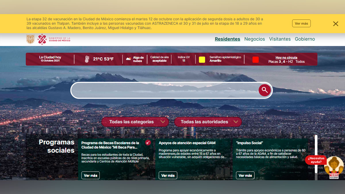 Redacción: Diario Capital  CDMX, 13 de Octubre 2021 La Agencia Digital de Innovación Pública (ADIP) presentó el nuevo portal de la Ciudad de México https://cdmx.gob.mx En conferencia de prensa José Merino informó que con la transformación de la página la ciudadanía podrá realizar diversos trámites de forma rápida y expedita, sólo con el uso de la LLAVE CDMX. Además, en ella se podrá consultar oportunamente información sobre el clima, la calidad del aire y del Programa Hoy No Circula, también se contará con un chat de asistencia con personal de Locatel.…