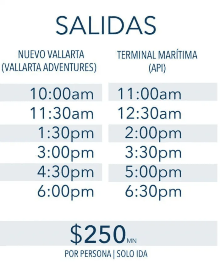 El transporte acuático para este 21 de abril, la empresa Vallarta Adventures ofrece un servicio especial que rondará en una cuota de 250 pesos por persona, solo por la ida, dessde dos puntos: Nuevo Vallarta (Vallarta Adventures) y la Terminal Marítima (API) durante horarios de mañana y tarde.