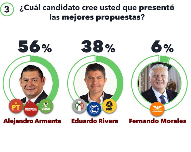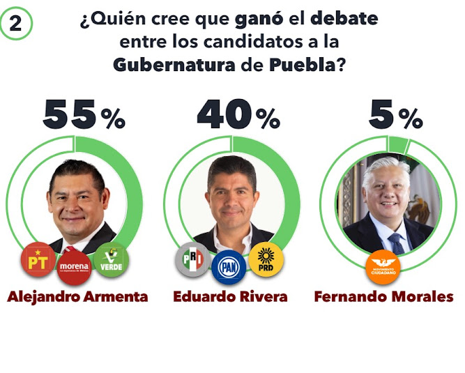 Según una encuesta llevada a cabo por Electoralia, Alejandro Armenta emerge como el favorito entre los votantes poblanos después del reciente debate por la gubernatura. Con un sólido respaldo del 55%, Armenta se posiciona como el candidato más destacado entre los electores.