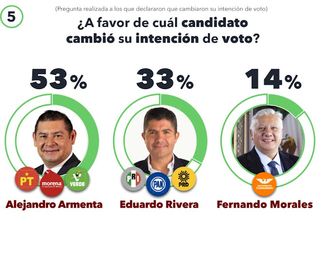 Detrás de Armenta, se encuentra Eduardo Rivera, con un respetable 40% de las preferencias. Rivera, aunque sigue siendo una opción viable, enfrenta el desafío de cerrar la brecha con Armenta en las próximas semanas antes de las elecciones.