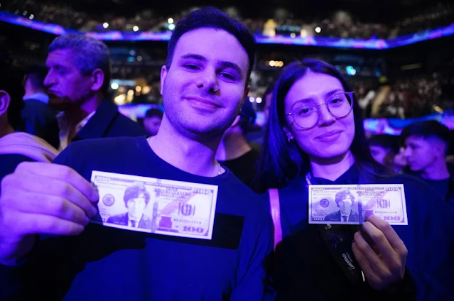 En el parque de Los Andes, estaba estacionado además el “Mileimóvil”, el ómnibus ploteado con la cara del economista, donde los interesados podían retirar las entradas para el acto, las cuales fueron traídas en un auto y estaban siendo custodiadas celosamente por Karina Milei, jefa de campaña de La Libertad Avanza.