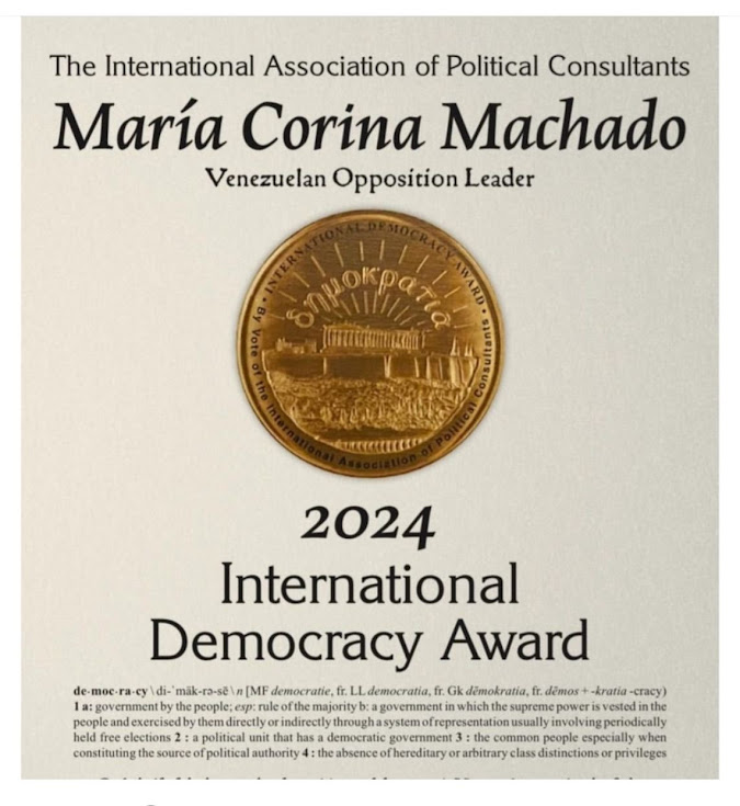 Compol La líder política venezolana María Corina Machado expresó su gratitud a la Asociación Internacional de Consultores Políticos (IAPC, por sus siglas en inglés) por un reconocimiento otorgado a la sociedad venezolana en su lucha por la democracia y la libertad. En un mensaje difundido a través de sus redes sociales, Machado agradeció a la organización por el “enorme reconocimiento” a los venezolanos, quienes, según sus palabras, han estado unidos y organizados, tanto dentro como fuera del país, para lograr una transición hacia la democracia. En representación de Machado y…