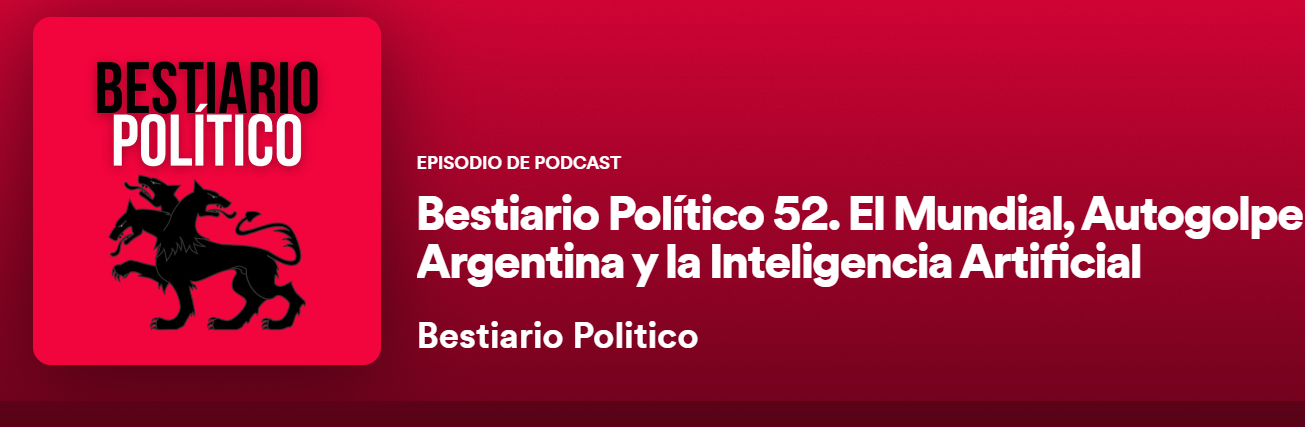 Capítulo 52: En este episodio nos atrevimos a hacer nuestros pronósticos de la fase final del Mundial (en los que por supuesto nos equivocamos muchísimo); además de revisar el brevísimo autogolpe de Pedro Castillo y la continuada crisis política en la nación andina. También analizamos la condena a Cristina Fernández de Kirchner y sus implicaciones políticas para Argentina. Finalmente, Nelson nos sumerge en el mundo de la Inteligencia Artificial y sus insospechadas consecuencias.
