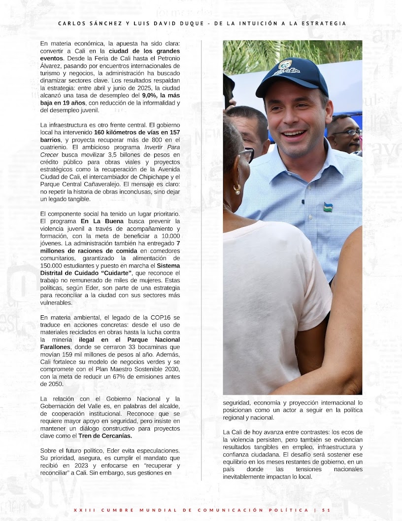 Sobre el futuro político, Eder evita especulaciones. Su prioridad, asegura, es cumplir el mandato que recibió en 2023 y enfocarse en “recuperar y reconciliar” a Cali. Sin embargo, sus gestiones en seguridad, economía y proyección internacional lo posicionan como un actor a seguir en la política regional y nacional.