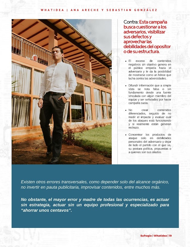 Contra: Esta campaña busca cuestionar a los adversarios, visibilizar sus defectos y aprovechar las debilidades del opositor o de su estructura.