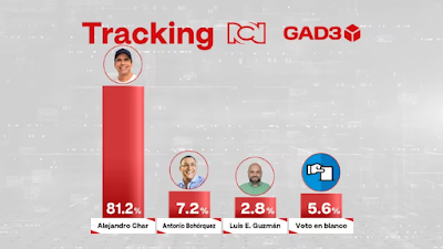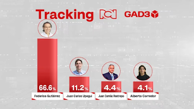 En efecto, se conoció la más reciente encuesta que mide las posibilidades de los candidatos con miras a la jornada electoral, efectuada por la firma GAD3 Colombia, para Noticias RCN. La misma que, en otras ciudades del país como Barranquilla, Cali y Medellín, empezó a marcar una clara tendencia con respecto a esta contienda.