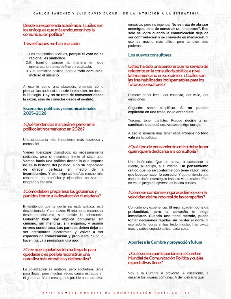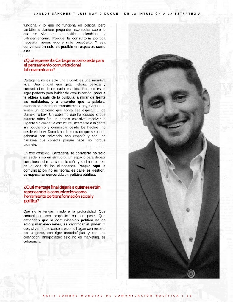 Voy a la Cumbre a provocar. A cuestionar, a desafiar los lugares comunes. A demostrar lo que funciona y lo que no funciona en política, pero también a plantear preguntas incomodas sobre lo que se vive en la política colombiana y Latinoamericana. Porque la consultoría política necesita menos ego y más propósito. Y esa conversación solo es posible en espacios como este.