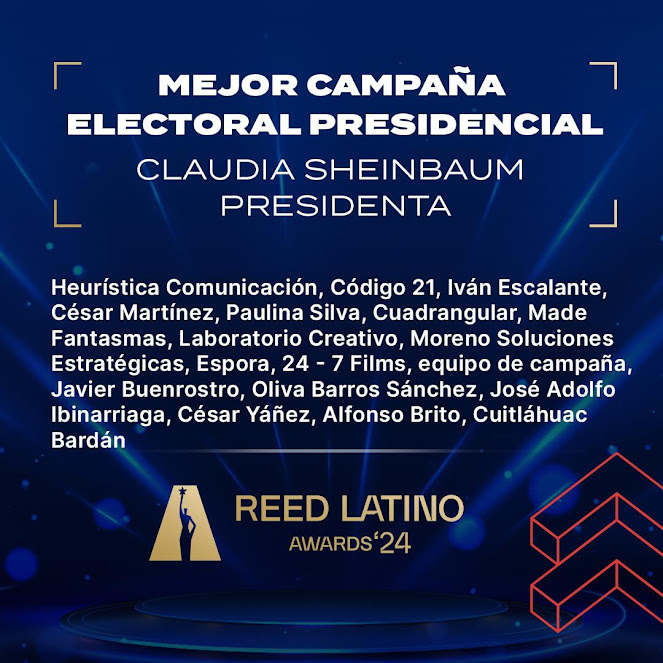 Además, Cuadrangular fue reconocido en la categoría de Mejor Campaña Electoral Online también por su labor con Claudia Sheinbaum. La estrategia digital implementada fue clave para llevar el mensaje de la candidata a diversas plataformas, maximizando su alcance y relevancia en redes sociales y otros medios digitales.