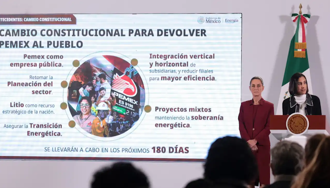 La Presidenta de México, Claudia Sheinbaum Pardo, presentó el nuevo régimen fiscal para Petróleos Mexicanos (Pemex) como parte de la Estrategia Nacional del Sector Hidrocarburos y Gas Natural. El nuevo sistema, denominado Derecho Petrolero para el Bienestar, establece un porcentaje del 30% o menos para el petróleo y un 11.63% para el gas.