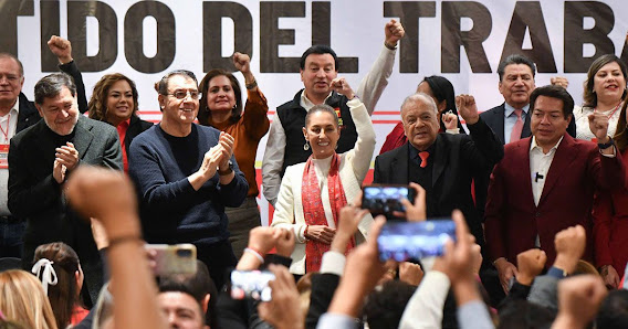 Militantes del PT lanzaron cánticos de “¡presidenta, presidenta!” para arropar a la candidata presidencial de la 4T, así como “¡Es un honor estar con Claudia, hoy!”.