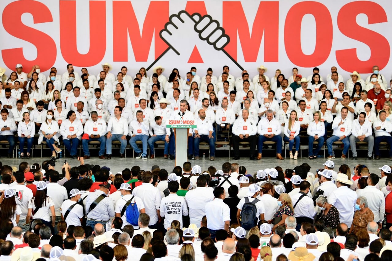 Hoy Coahuila esta más unido y más fuerte que nunca. Porque en nuestro estado el PRI no ha detenido el ritmo, por el contrario, hemos registrado estándares de crecimiento, desarrollo y bienestar para las familias coahuilenses, aseveró el primer priista de Coahuila, Miguel Ángel Riquelme Solís, al encabezar la Trigésima Tercera Sesión Extraordinaria del Consejo Político Estatal del Partido Revolucionario Institucional (PRI), en la que se tomó protesta a los 38 Comités Municipales de cara a la elección de próximo 2023.