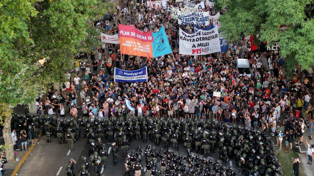 Argentina Los diputados de Argentina decidieron la noche del miércoles (31.01.2024) que continuarán al día siguiente el debate de un polémico paquete de reformas ultraliberales propuestas por el presidente ultraderechista Javier Milei, mientras a las puertas del Congreso miles de personas se manifestaron en contra de la aprobación del paquete porque lo consideran abusivo. Tras casi 12 horas de debate, los diputados suspendieron la sesión hasta el jueves a mediodía, cuando el oficialismo espera tener el apoyo para aprobar “en general” la Ley Ómnibus de reformas económicas, políticas, de seguridad…