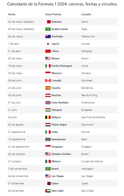 El mundial 2024 de Fórmula 1 empieza el 2 de marzo, en Bahrein, con una carrera en sábado.