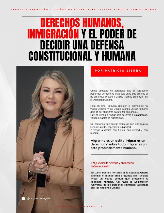 Por: Patricia Paola Sierra Como abogada he aprendido que el verdadero poder del Derecho no esta solo en lo que prohíbe si no en lo que protege y si algo merece protección es la Dignidad Humana. Pero ahí una Pregunta que con el Tiempo se ha vuelto Urgente y es: Desde cuando un ser humano dejo de ser suficiente para tener derechos?.  Hoy no vengo a hablar solo de leyes o estadísticas. Vengo a hablar de humanidad.De personas que cruzan fronteras con una maleta llena de miedo, esperanza y…
