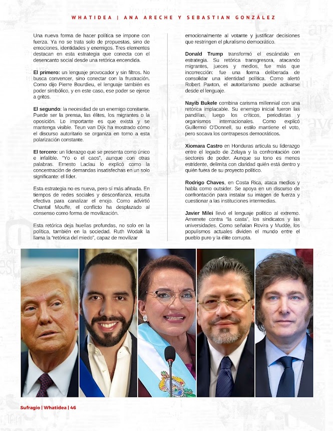Por Fernando Francia Cuando los líderes prefieren gritar antes que dialogar, el poder se vuelve un espectáculo de fuerza que erosiona la democracia desde adentro. Trump, Bukele, Castro, Chaves, Milei: cinco líderes que han optado por la violencia retórica y el enfrentamiento como estrategia para sumar adeptos, aunque dividan profundamente a sus sociedades. ¿Es la nueva tendencia? ¿Qué debemos hacer los consultores políticos al respecto? Una nueva forma de hacer política se impone con fuerza. Ya no se trata solo de propuestas, sino de emociones, identidades y enemigos. Tres elementos…