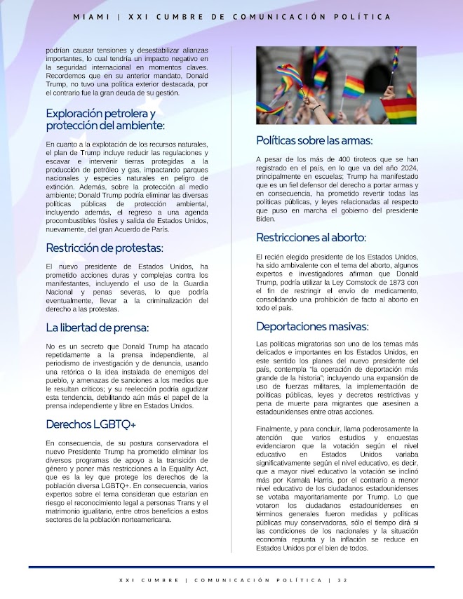 Finalmente, y para concluir, llama poderosamente la atención que varios estudios y encuestas evidenciaron que la votación según el nivel educativo en Estados Unidos variaba significativamente según el nivel educativo, es decir, que a mayor nivel educativo la votación se inclinó más por Kamala Harris, por el contrarío a menor nivel educativo de los ciudadanos estadounidenses se votaba mayoritariamente por Trump. Lo que votaron los ciudadanos estadounidenses en términos generales fueron medidas y políticas públicas muy conservadoras, sólo el tiempo dirá si las condiciones de los nacionales y la situación economía repunta y la inflación se reduce en Estados Unidos por el bien de todos.