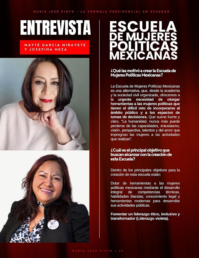 En el contexto de una democracia que exige cada vez más inclusión, pluralidad y representatividad, la participación política de las mujeres se vuelve una prioridad impostergable para lograr equidad real y efectiva en los espacios de toma de decisiones. Conscientes de este reto, Josefina Meza Espinosa y Mayté García Miravete fundaron la Escuela de Mujeres Políticas Mexicanas, un proyecto académico y social que busca dotar a las mujeres de las herramientas técnicas, estratégicas y éticas necesarias para fortalecer su liderazgo y presencia en la vida pública.