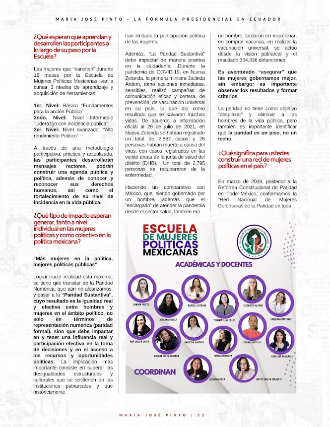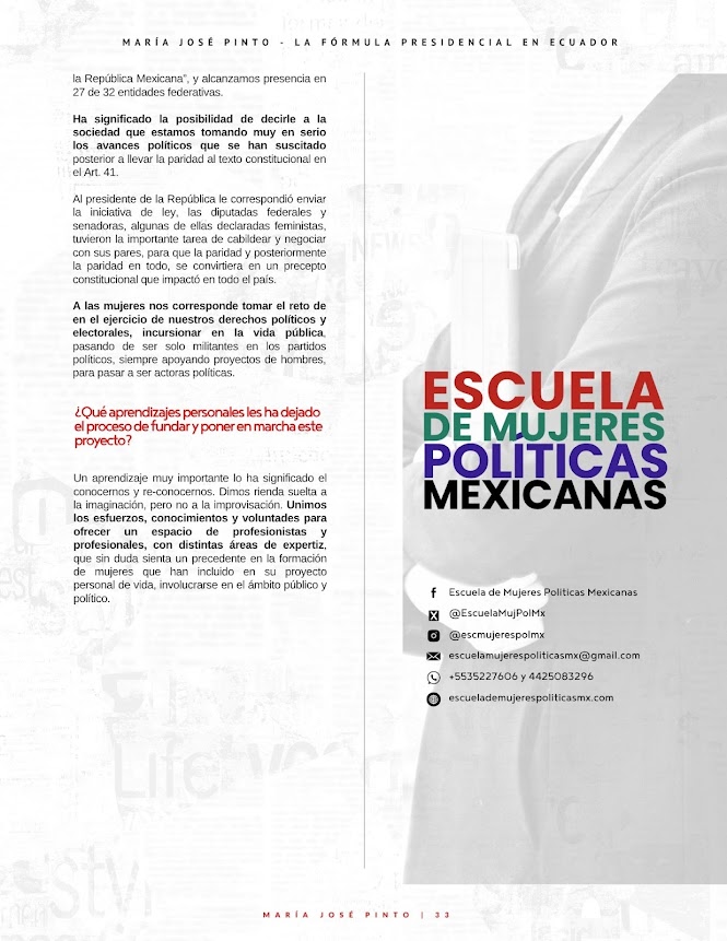 Este cuestionario explora las motivaciones, objetivos y visión que impulsan a las fundadoras de esta innovadora iniciativa, así como los retos y oportunidades que enfrentan las mujeres en la política mexicana. A través de sus respuestas, Josefina y Mayté profundizan en la importancia de una formación especializada y con perspectiva de género, que impulse no solo la paridad numérica, sino también una verdadera paridad sustantiva, capaz de transformar la estructura política tradicional y aportar soluciones integrales a las problemáticas sociales actuales.