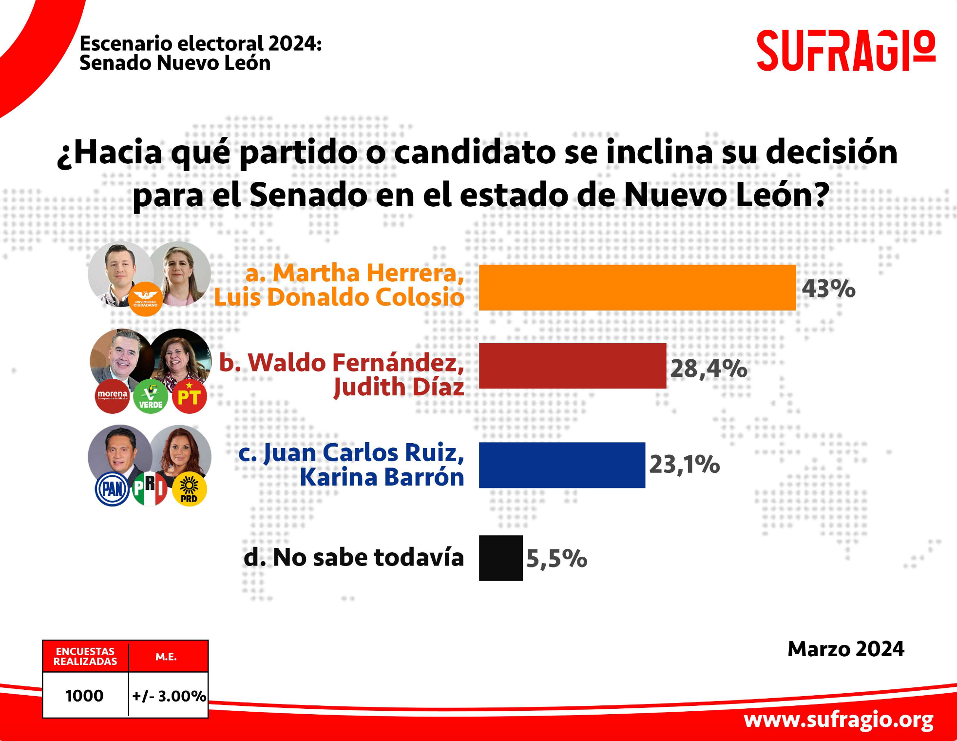 encuesta Escenario Electoral 2024 Nuevo León senado Sufragio Encuesta