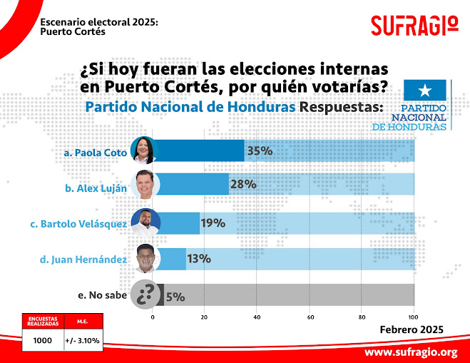 A diez días de la jornada electoral interna, el panorama político en Puerto Cortés, Honduras, mantiene una tendencia similar a la observada en estudios previos. Un segundo análisis realizado por Sufragio revela que Paola Coto, por el Partido Nacional, junto a Christian Rowe por Libre y Giancarlo Rodríguez por PLH, se perfilan como los aspirantes con mayor respaldo ciudadano. Sin embargo, en algunos casos, la diferencia entre los contendientes es mínima, lo que impide considerar estos resultados como definitivos. Con un electorado aún en movimiento y factores que podrían…