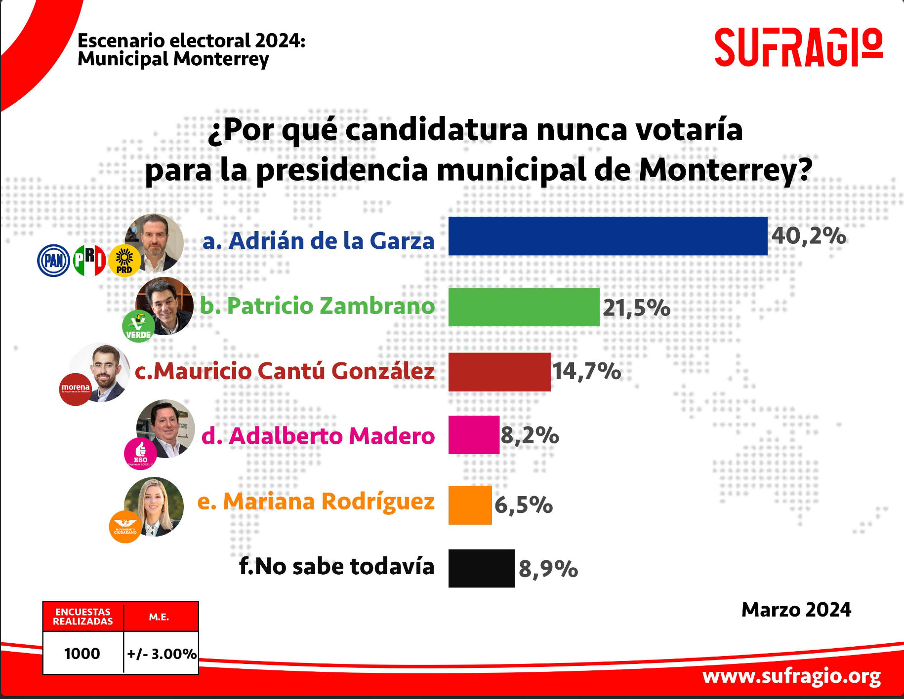 Resumen y contextoResumen (clic para ver) encuesta Escenario Electoral 2024 Monterrey Municipal Nuevo León Sufragio Encuesta