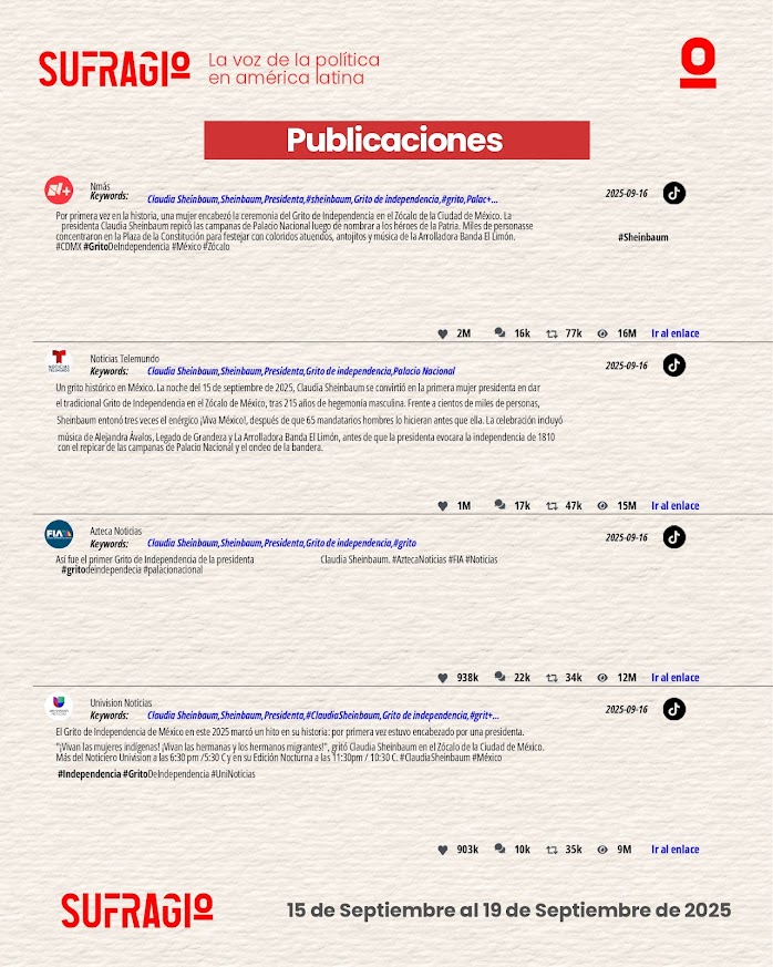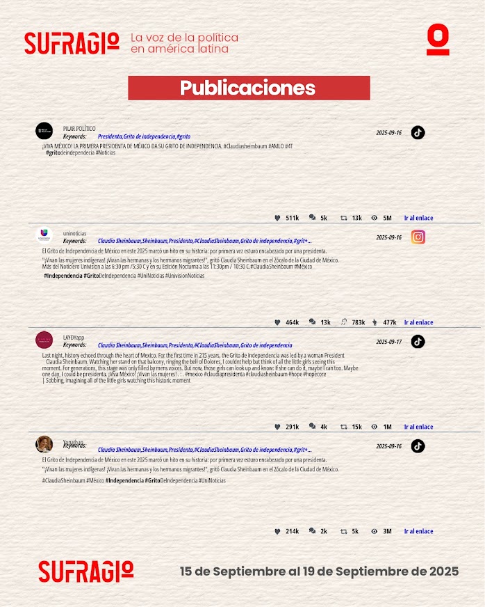 La celebración generó un notable nivel de interacción en plataformas digitales, donde miles de usuarios comentaron, compartieron y reaccionaron a publicaciones que destacaron tanto la relevancia histórica del acontecimiento como el papel de las mujeres en la construcción de la nación. En su discurso, Sheinbaum reconoció la contribución de figuras femeninas a lo largo de la historia de México, reforzando un mensaje de inclusión y equidad que resonó ampliamente en la ciudadanía.
