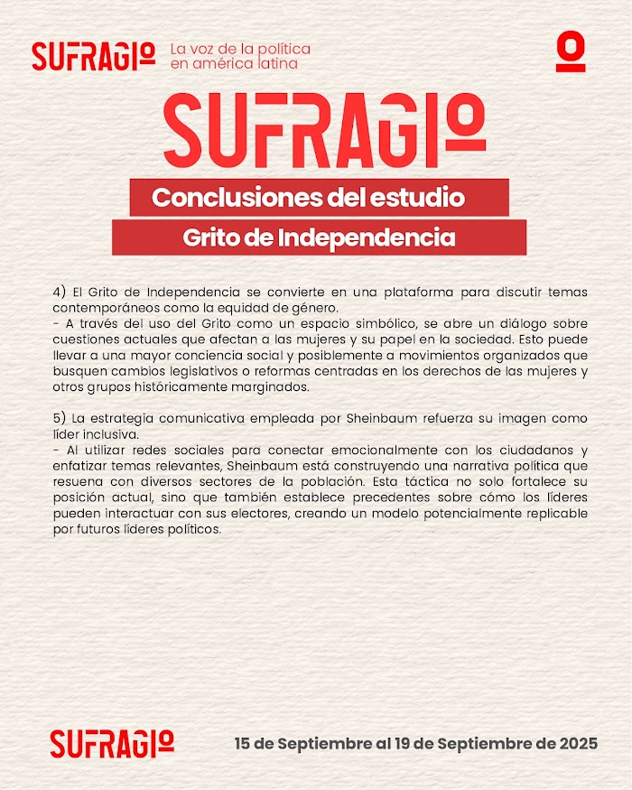 Más allá de la festividad, el Grito de 2025 se presentó como un escenario para la reflexión sobre temas contemporáneos, desde la participación política femenina hasta el liderazgo inclusivo. Este contexto evidencia un México en transición, donde la conmemoración histórica se entrelaza con la discusión social y política del presente, ofreciendo nuevas perspectivas para analizar la evolución de la política y la sociedad mexicana.