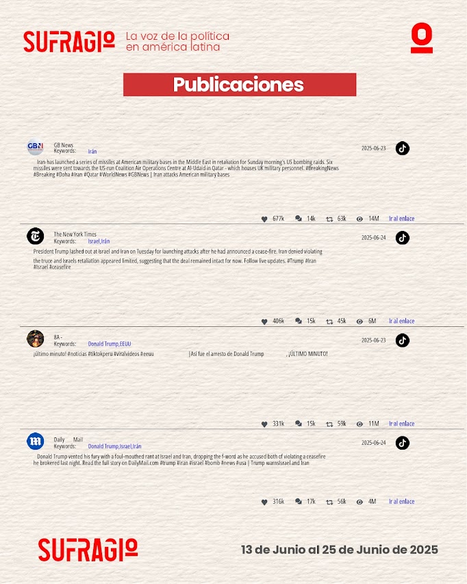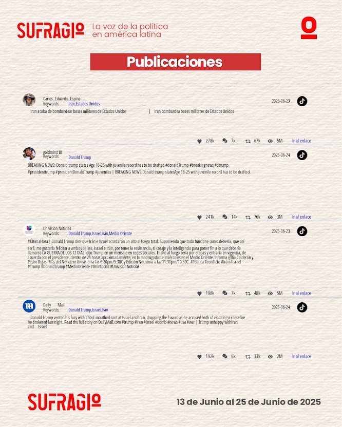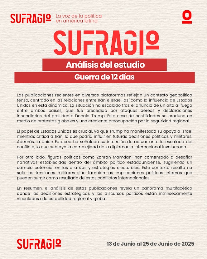 Las recientes publicaciones en redes y medios internacionales evidencian un escenario geopolítico marcado por alta tensión, particularmente entre Irán e Israel, con Estados Unidos jugando un rol determinante. El anuncio de un alto al fuego —precedido por ataques militares y declaraciones provocadoras de Donald Trump— ha intensificado el debate sobre la seguridad regional y las implicaciones diplomáticas. En este contexto, emergen voces políticas que desafían el discurso dominante, revelando una compleja intersección entre conflictos internacionales y dinámicas electorales internas.