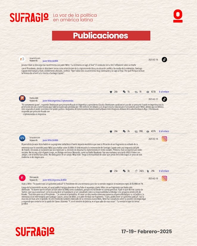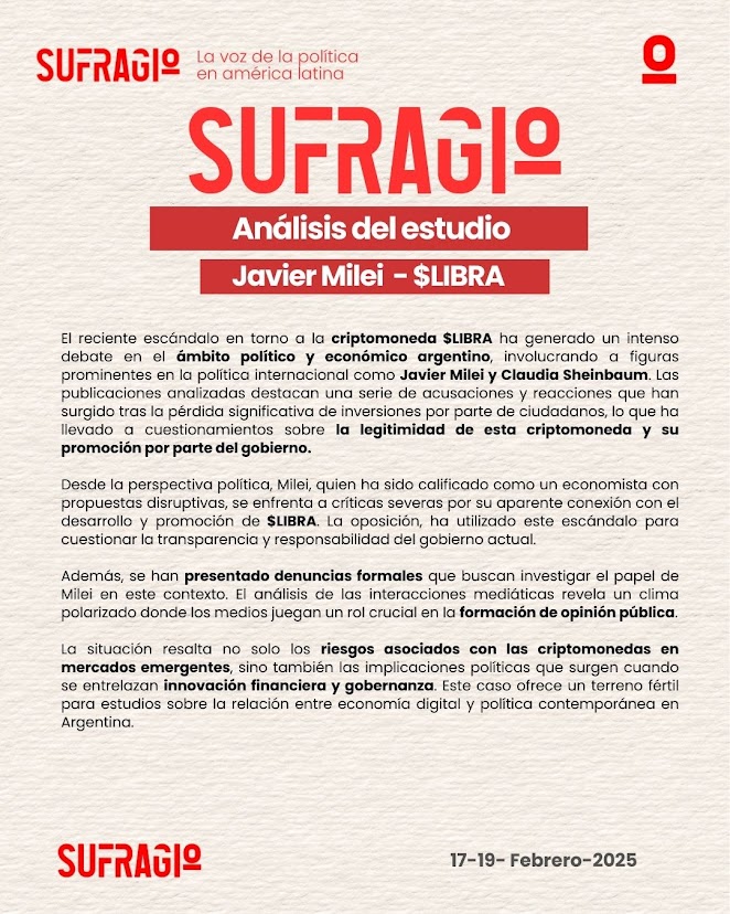 El escándalo en torno a la criptomoneda $LIBRA ha desatado un intenso debate en Argentina, involucrando a figuras clave como Javier Milei y Claudia Sheinbaum. La pérdida de inversiones de numerosos ciudadanos ha generado denuncias y cuestionamientos sobre la legitimidad de esta criptomoneda y su promoción. Milei, conocido por su enfoque económico disruptivo, enfrenta críticas por su presunta conexión con $LIBRA, mientras que la oposición, liderada por Sheinbaum, exige mayor transparencia y responsabilidades del gobierno. La controversia resalta los riesgos de las criptomonedas en mercados emergentes y la creciente intersección…