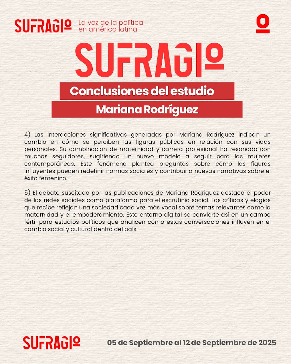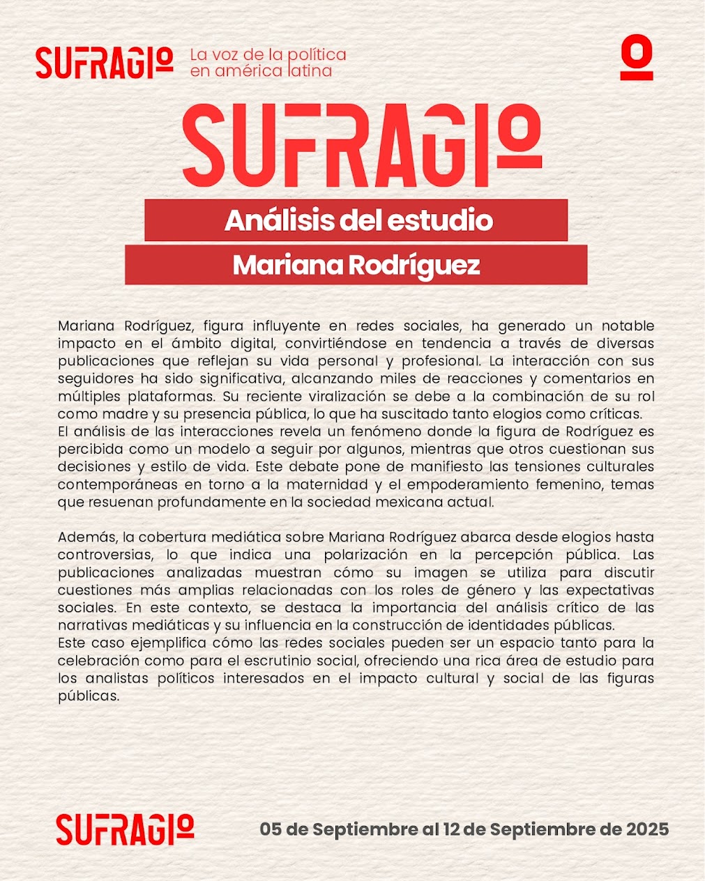 Mariana Rodríguez se ha consolidado como una de las figuras más influyentes en el ecosistema digital mexicano. Su presencia en redes sociales trasciende la simple exposición personal para convertirse en un fenómeno cultural y mediático que genera intensos debates públicos. A través de publicaciones que combinan su faceta profesional con la experiencia de la maternidad, Rodríguez no solo atrae miles de reacciones e interacciones, sino que también se posiciona en el centro de una discusión más amplia sobre los roles de género, la visibilidad femenina y el empoderamiento en la era digital. Su viralización reciente refleja el poder de las plataformas sociales como escenarios de reconocimiento, pero también de escrutinio, evidenciando la polarización en torno a su figura y el papel que desempeñan las mujeres en la vida pública contemporánea.