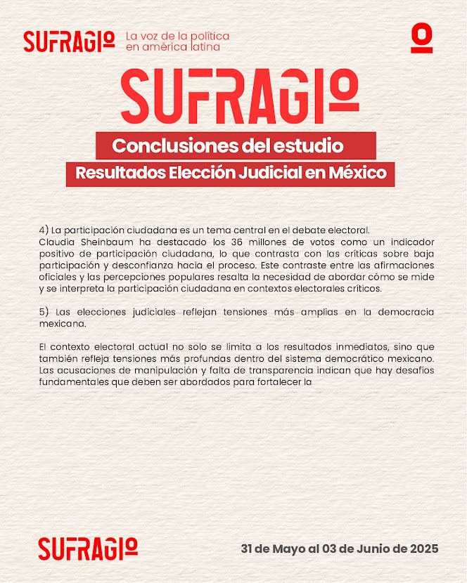 La elección judicial en México ha generado fuerte polarización. Mientras la presidenta Claudia Sheinbaum destaca el respaldo ciudadano, críticos como el expresidente López Obrador denuncian baja participación y manipulación. El INE enfrenta cuestionamientos por su imparcialidad. Las acusaciones de irregularidades ponen en duda la legitimidad del proceso y reavivan preocupaciones sobre la salud democrática del país.