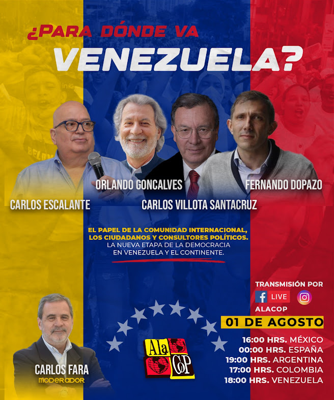 Este evento se transmitirá en vivo a través de las redes sociales de ALACOP a las 16:00 hrs. México, 00:00 hrs. España, 19:00 hrs. Argentina, 17:00 hrs. Colombia, 18:00 hrs. Venezuela y está diseñado para ofrecer una perspectiva profunda y actualizada sobre los desafíos y oportunidades que enfrenta Venezuela en su camino hacia una nueva etapa democrática.