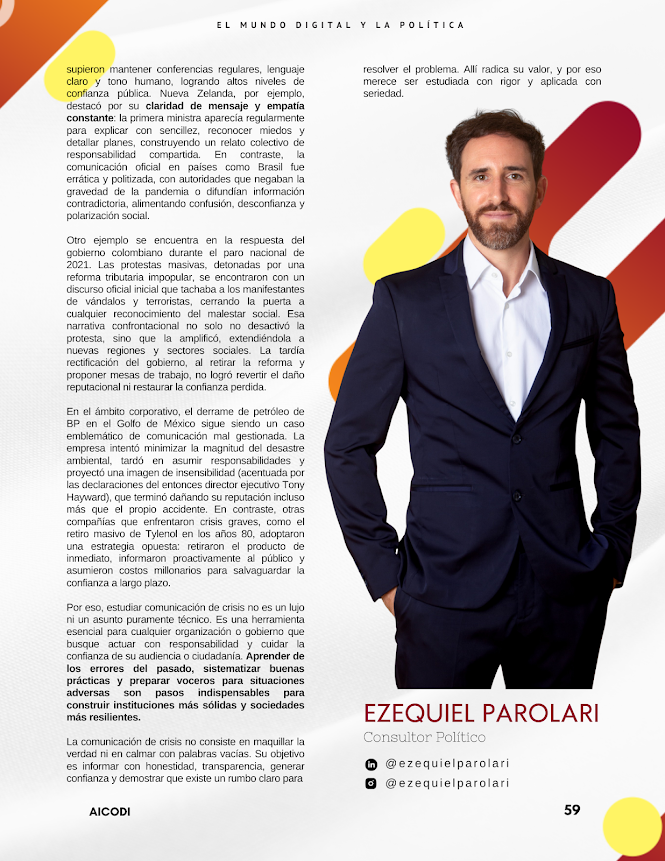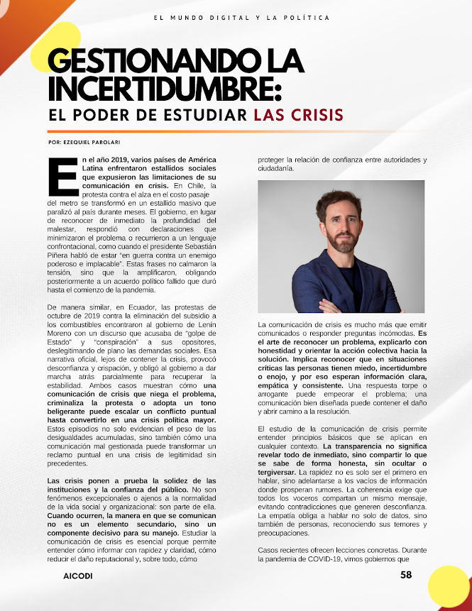 Por: Ezequiel Parolari En el año 2019, varios países de América Latina enfrentaron estallidos sociales que expusieron las limitaciones de su comunicación en crisis. En Chile, la protesta contra el alza en el costo pasaje del metro se transformó en un estallido masivo que paralizó al país durante meses. El gobierno, en lugar de reconocer de inmediato la profundidad del malestar, respondió con declaraciones que minimizaron el problema o recurrieron a un lenguaje confrontacional, como cuando el presidente Sebastián Piñera habló de estar “en guerra contra un enemigo poderoso e…
