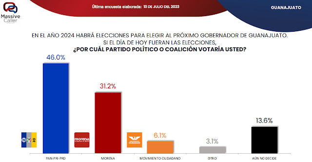 En Guanajuato, se ha desatado un intenso movimiento político en preparación para las elecciones del 2024, y de acuerdo a las mediciones, la coalición conformada por PAN, PRI y PRD se posiciona como favorita entre la ciudadanía.