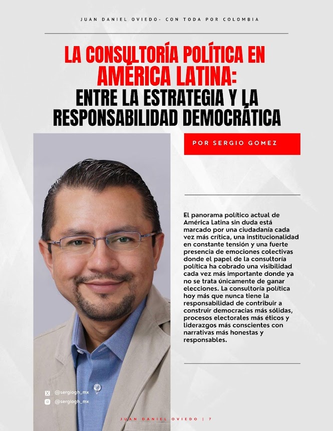 Por: Sergio Gómez Hernández El panorama político actual de América Latina sin duda está marcado por una ciudadanía cada vez más crítica, una institucionalidad en constante tensión y una fuerte presencia de emociones colectivas donde el papel de la consultoría política ha cobrado una visibilidad cada vez más importante donde ya no se trata únicamente de ganar elecciones. La consultoría política hoy más que nunca tiene la responsabilidad de contribuir a construir democracias más sólidas, procesos electorales más éticos y liderazgos más conscientes con narrativas más honestas y responsables. Es…