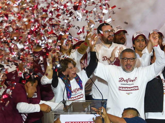 Tras darse a conocer las cifras oficial del conteo rápido del Instituto Electoral del estado de México, que le dan la ventaja a la candidata de la coalición entre Morena, PT y el PVEM, Delfina Gómez, integrantes del gabinete federal, gobernadores morenistas y los coordinadores de las bancadas del partido guinda en el Congreso, felicitaron a la virtual ganadora de los comicios.