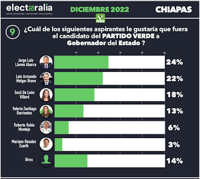 Chiapas elecciones electoralia encuesta Llaven Abarca Nacional Partido Verde