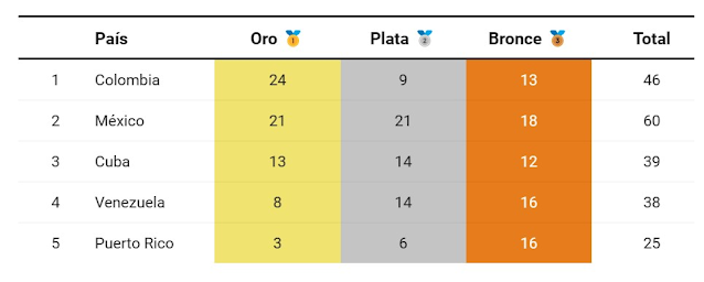Medallero por país en los Juegos Centroamericanos y del Caribe 2023