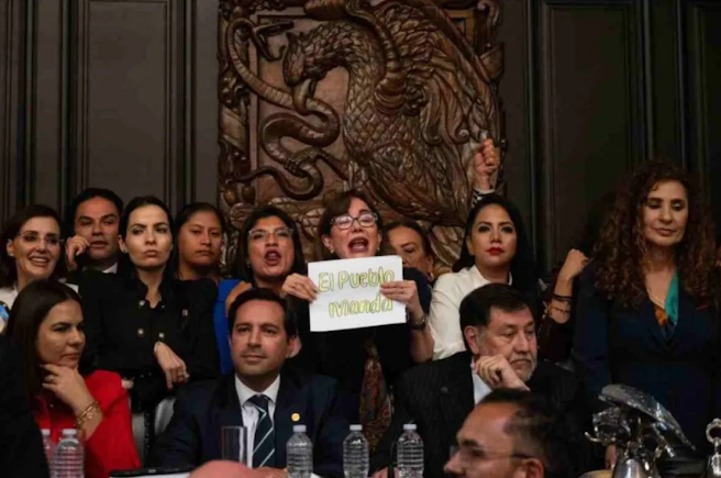 Desde el inicio de la discusión, la tribuna estuvo tomada por legisladores de PRI, PAN y Movimiento Ciudadano, mientras se registraron enfrentamientos entre manifestantes y la policía. La discusión se extendió por casi toda la jornada, con Fernández Noroña, presidente del Senado, rompiendo momentos la institucionalidad al advertir ante las protestas de la oposición que “¡la reforma va!”. Argumentó que el artículo 99 del reglamento le permitía concluir la discusión tras una primera ronda de intervenciones y sometió la reforma a una votación económica.