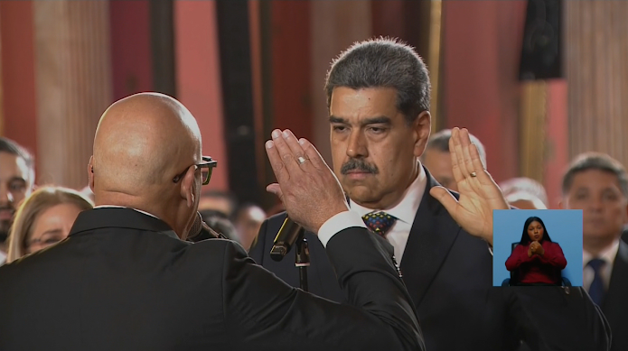 “Juro que este nuevo período presidencial será el período de la paz”, declaró Maduro al prestar juramento ante Jorge Rodríguez, presidente del Parlamento y figura clave del chavismo. “Queda usted investido como presidente constitucional”, respondió Rodríguez al concluir el acto protocolar.