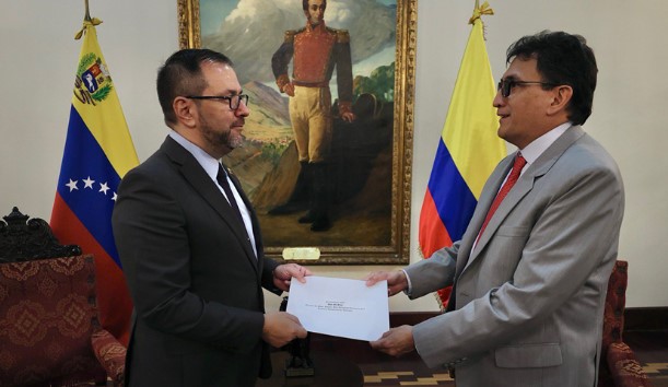 Tras su llegada a Caracas, el nuevo embajador de Colombia en Venezuela, Milton Rengifo, entregó sus cartas credenciales ante la Cancillería venezolana como parte del protocolo internacional para su acreditación.