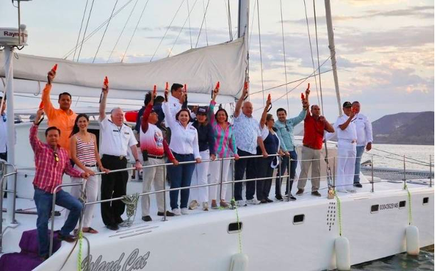 Acompañado por la secretaria de Turismo y Economía, Maribel Collins Sánchez; la presidenta del Sistema DIF estatal, Patricia López Navarro; del titular de FONMAR, Martín Inzunza; las alcaldesas de La Paz, Milena Quiroga; Comondú, Ileana Talamantes Higuera; y Loreto, Paola Cota Davis; el diputado Eduardo Van Wormer y representantes de las Fuerzas Armadas.