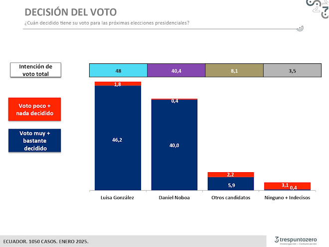 Vilker resaltó que la encuesta refleja el panorama actual, pero señaló que los votantes indecisos jugarán un papel decisivo en el resultado final, especialmente porque tienden a definirse en la última semana antes de los comicios. En cuanto a las principales preocupaciones de los ciudadanos, la seguridad y la economía se destacan como los temas más relevantes en este proceso electoral. “Economía y violencia son los dos grandes temas que marcan el rumbo de las elecciones en Ecuador”, concluyó Vilker.