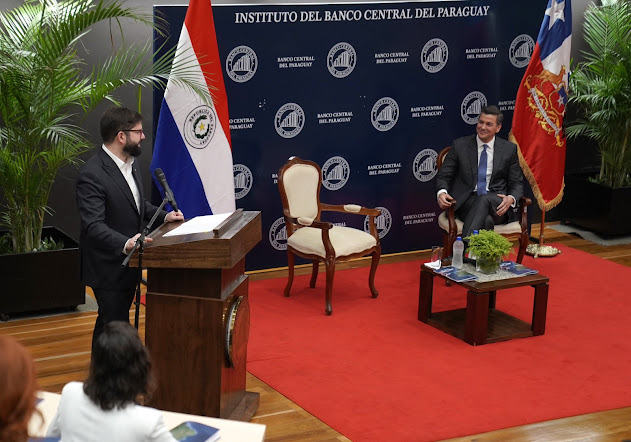 El presidente chileno concluyó su participación en un conversatorio en el Banco Central del Paraguay, destacando las oportunidades comerciales y de integración que ofrece el Corredor Vial Bioceánico tanto en términos físicos como digitales y de transferencia de conocimiento.