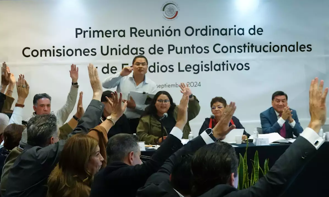 Tras seis horas de intenso debate, las comisiones unidas de Puntos Constitucionales y de Estudios Legislativos del Senado aprobaron en lo general la reforma judicial, con 25 votos a favor y 12 en contra. El principal cambio propuesto es la elección de jueces, magistrados y ministros mediante voto popular.