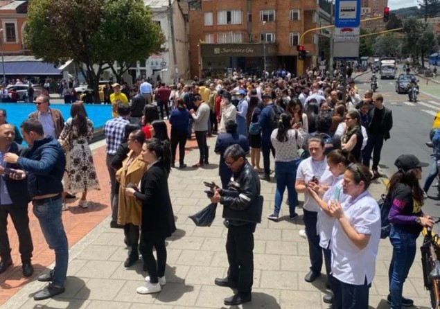 La ciudad de Bogotá y sus alrededores se convirtieron en un escenario caótico, con grupos de personas llenando las calles después del sismo y sus réplicas. Los edificios evacuados se sumaron al panorama, mostrando una población unida en medio de la adversidad.