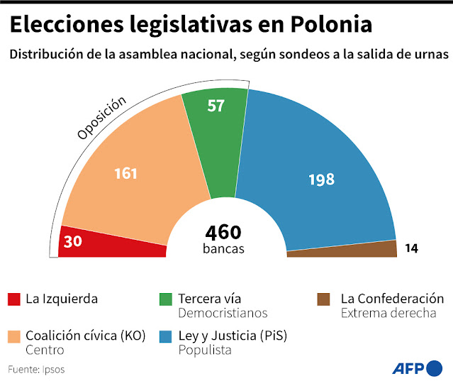 Una coalición de todas las fuerzas de la oposición que lograrán presencia parlamentaria podría echar del poder al PiS, a pesar de su victoria en número de votos, algo a lo que el líder de PO, Donald Tusk, se refirió como una posibilidad real al conocerse las primeras encuestas de la noche electoral.
